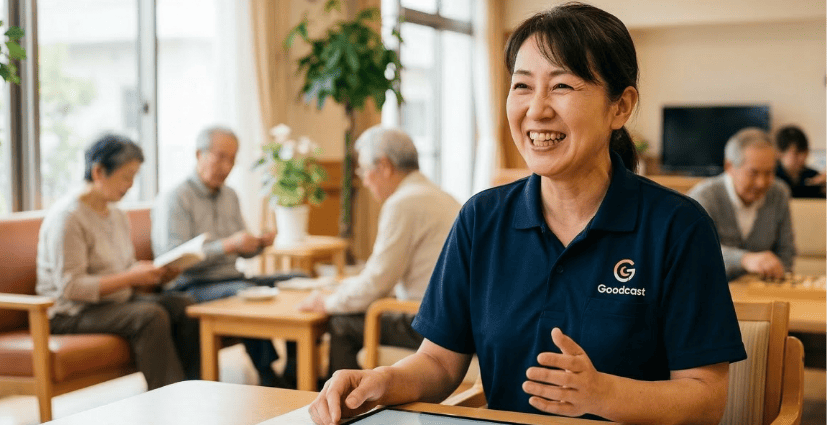 グッドキャストは、採用して終わりではなく、介護現場に定着し長く活躍してもらうことを最も重視しています。就業前の日本語・介護教育から、就業後の生活・就労・日本語フォローまで一貫して支援。現場職員と外国人材の双方に寄り添い、安心して働き続けられる環境づくりを行っています。